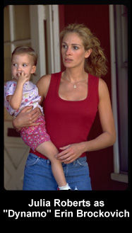 ends, justice goes to the little guy, and the previously Several articles on Erin Brockovich already appear in Picturing Justice. Julia Roberts� latest star turn as the flouncy paralegal who shoots and scores against a corporate Goliath offers something for everybody. Judith Grant emphasizes the film�s skewed take on class and gender politics (www.usfca.edu/pj/brockovich-grant.htm). Michael Asimow applauds how the film equates justice with fairness and champions supporting players of the law who "stand in the shadow of lawyers" (www.usfca.edu/pj/brockovich-asimow.htm). We even have a comparative legal systems approach. Ysiah Ross includes no discussion of dingos and babies, fortunately, but he speculates on how events might have a different outcome with "Erin Brockovich in Australia" (www.usfca.edu/pj/brockovich-ross.htm). Each commentator takes a different interpretive tack, but all nod approvingly toward the film�s basis in "reality." The real-life aftermath to events portrayed in Erin provides a sobering twist on this "true story." A month after this film opened, Salon magazine presented a lengthy article examining the actual case that Erin Brockovich and her boss Ed Masry had begun against Pacific Gas & Electric (www.salon.com/ent/feature/2000/04/14/sharp/index.html). Author Kathleen Sharp conducted numerous interviews with residents of Hinkley, California, the town affected by PG&E�s alleged ecological negligence. She spoke with over twenty judges and attorneys familiar with the case that became Anderson v. PG&E. In addition, Sharp had access to letters the plaintiffs received from their lawyers, updating them on the case. Sharp�s article tells us what we may not want to hear. While the real Erin Brockovich basks in the glow of the film�s successful reception, giving interviews and appearing on Oprah, the bitter citizens of Hinkley California have allegedly hired new attorneys and are preparing to file a spate of lawsuits against Erin�s firm. According to Sharp�s account, the legal profession falls down on the job. Erin et al guided the Hinkley residents into seeking justice via private arbitration. This procedure is supposed to cut court costs and streamline the process. Instead, Sharp provides substantial evidence that arbitration played a key role in undermining the awards to deserving Hinkley residents. Sharp notes, "The formula for disbursing the money has been kept secret, as has the entire transcript of the arbitration proceeding." Sharp alleges that residents were supposed to receive awards based on medical bills, but in many cases, no medical records were examined. One resident said the major criterion for getting a larger settlement was being "buddies with Ed and Erin." Lawyers allegedly held the award money for nearly six months before it was dispersed. Hinkley residents received no explanation for the delay. They had lost Erin as an advocate: "suddenly, they couldn�t get through to anyone, not even Brockovich." Because of the secrecy imposed on the arbitration process, Sharp makes the case that it�s impossible to determine where interest on the award money went. Where�s the rest of our money? plaintiff Carol Smith asked. Many legitimate questions about the award disbursement remain unanswered. Residents had agreed that their lawyers, Erin�s firm among them, would receive 40 % of the settlement. However, Sharp�s account indicates that lawyers later billed their clients an extra ten million dollars "for expenses." Despite being asked, the firms supposedly failed to provide an itemization for the bill. Sharp�s article alleges that another financial irregularity cropped up in the percentage of lawyers� fees charged to children. California Law says that attorneys may take a quarter of settlement fees to minors. In this case, arbitrators supposedly allotted the lawyers a third. A report about Erin Brockovich the real person, not Julia Roberts, appeared in Entertainment Weekly (5/12/00). Several male acquaintance of Brockovich, one of whom was portrayed as a supportive, upstanding character in the film, allegedly demanded that Brockovich pay them off. Otherwise, they would supply the tabloids with a story that Brockovich and Ed Masry had had an affair and that Brockovich was an unfit mother. Both Brockovich and Masry cooperated in an FBI sting operation, which led to the men being arrested for extortion. Art is not real life, although we bring the same interpretive processes to each. Where does fact end and fiction begin? Whether direct or virtual, all experiences contain a soupy blend of the two. Through many "tastings," we learn to savor all the ingredients. The real case of Anderson versus Pacific Gas & Electric fails to live up to the positive image of legal practitioners in Erin Brockovich. Does this take away from the film? I don�t think so, nor should it. But neither should a film�s claim to replicate an actual event presage its value. As much as we applaud Erin�s triumphs, Hollywood has a long history of fulfilling dreams, but they are still dreams, however much we want to believe them.